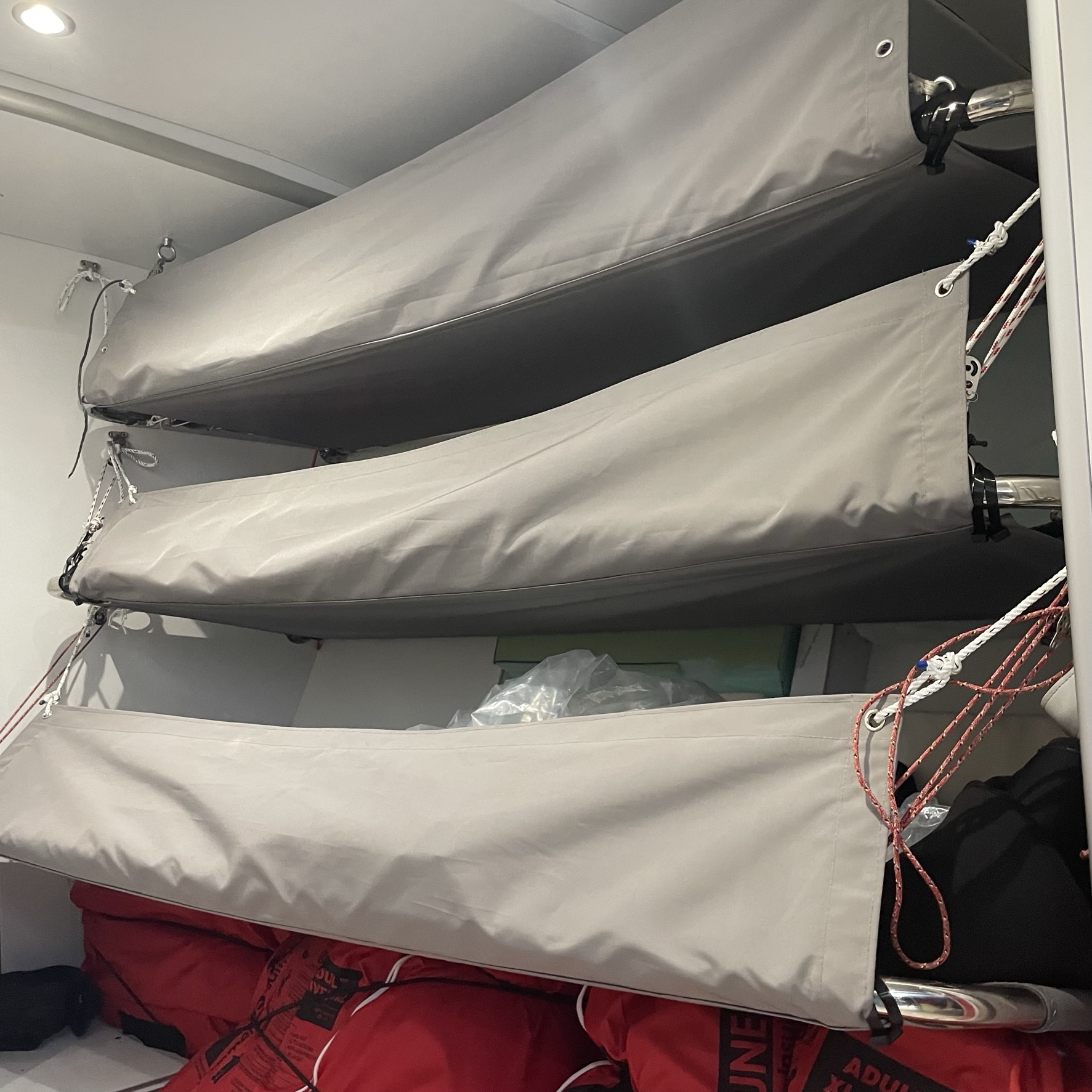 An essential item for customers that do passage sailing and require the security to be kept in a bunk whilst asleep. These are measured and made to suit the required size to fit between mattresses, cushions and bulkheads. Depending on the usage we can make these from Acrylic, Polyester or Mesh.